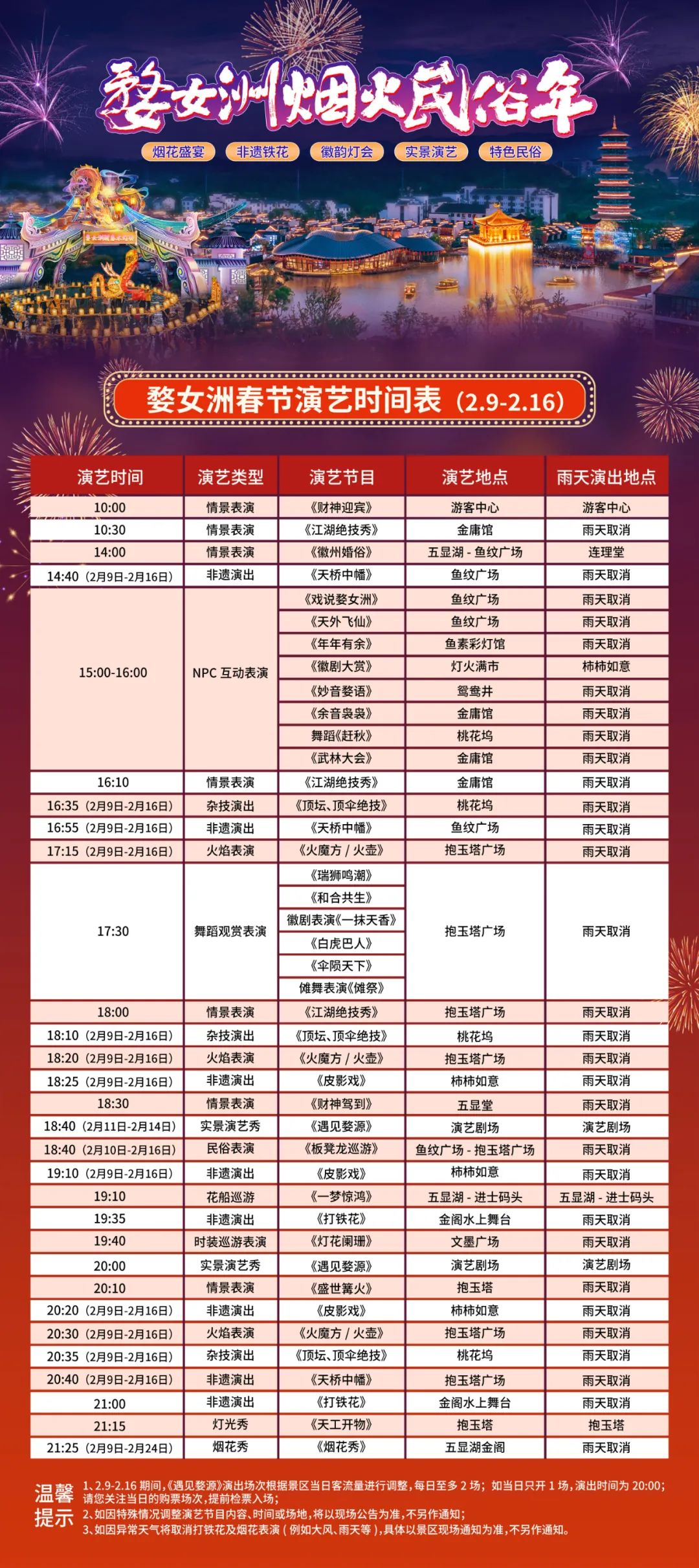 婺女洲春節演藝時(shí)間表